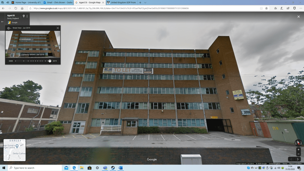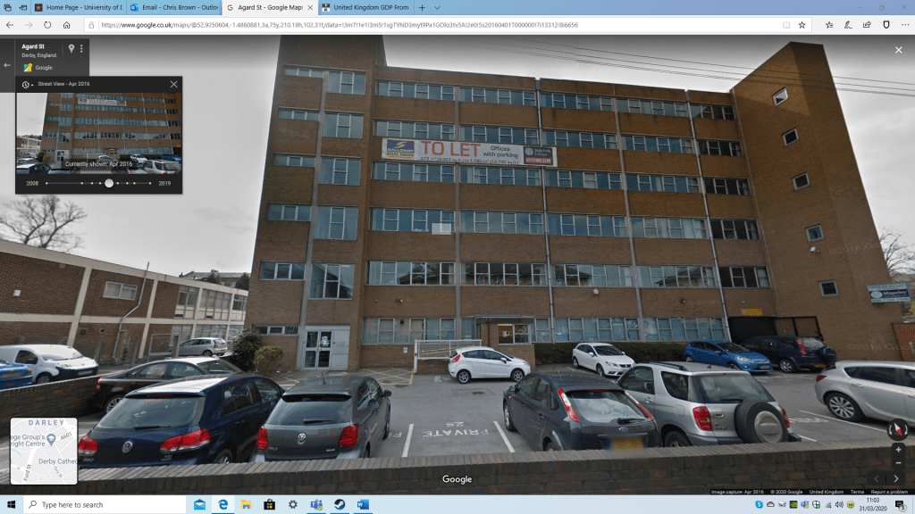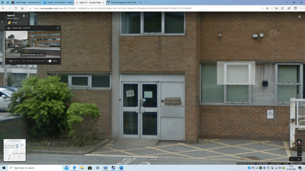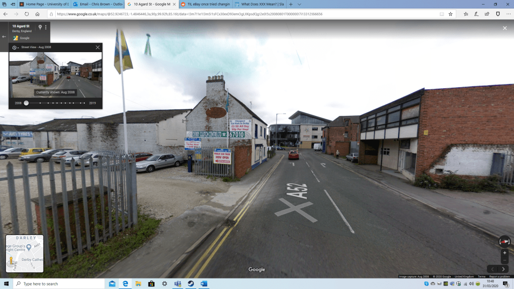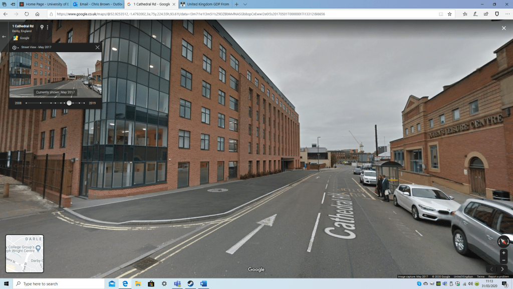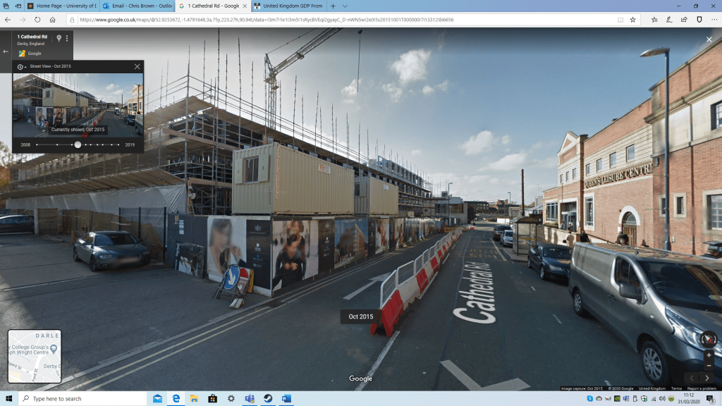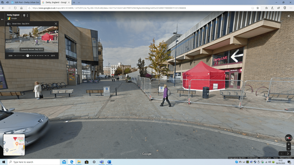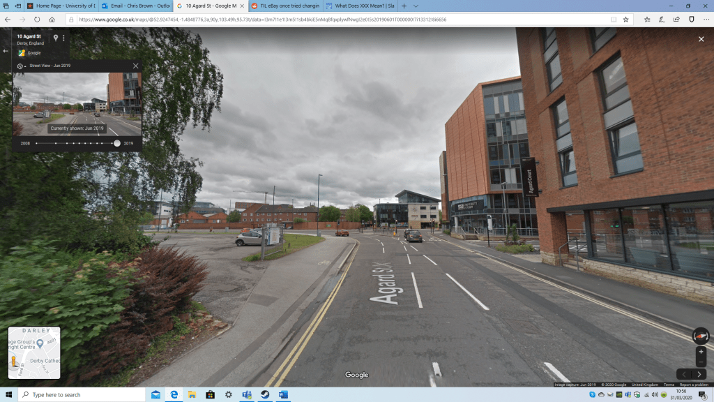 I Went on Google maps and went around several areas in Derby that were of personal interest and used the feature where in some areas of the world, you can change the year so you get a completely different perspective of the world. Because of the nature of my virtual walk, I looked through this from a visual perspective. Much of the Environments I explored has a great deal of familiarity since I visualised these spaces from my commutes from Joseph Wright Centre to Derby Bus Station and the other way around when I was in College. I picked Derby for my virtual walk because it is one of the places I am most familiar with despite my rural residence elsewhere.