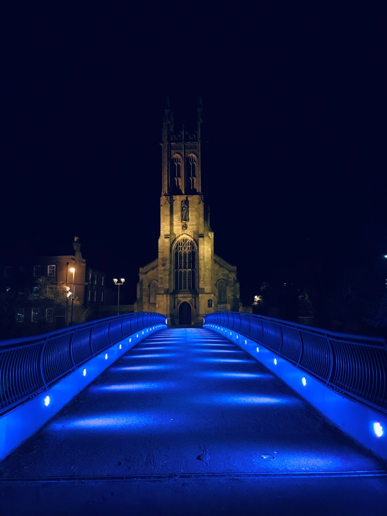As I go on my way, it gets simpler, I understand more things, I pass by this imposing cathedral that might look like me and yet is not where I would go to rest by being almost completely myself. No, I continue on Queen street and there it is the space of people in a little more hurry, driving in these cars, which escape from everything I have just experienced, since they offer an individual bubble to the person on board, he only sees the point where he has to go and the emotional stimuli will be very limited on board this material shell. I make my way through these emotional tanks and finally, I fly over them, on this incredibly well imagined bridge (Saint Alkmund’s Way Footbridge), as it is the height of calm above the whirlwind of urban life. All I see now is the end of my path, great, gentle, inviting me to come and rest, St Mary’s Church.