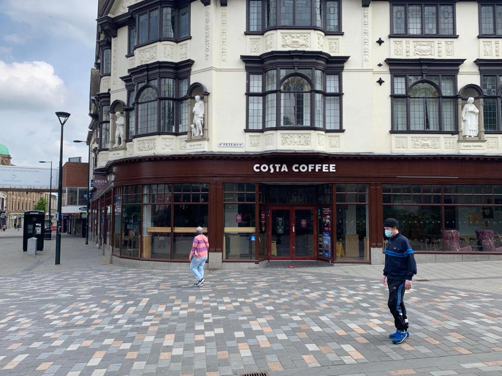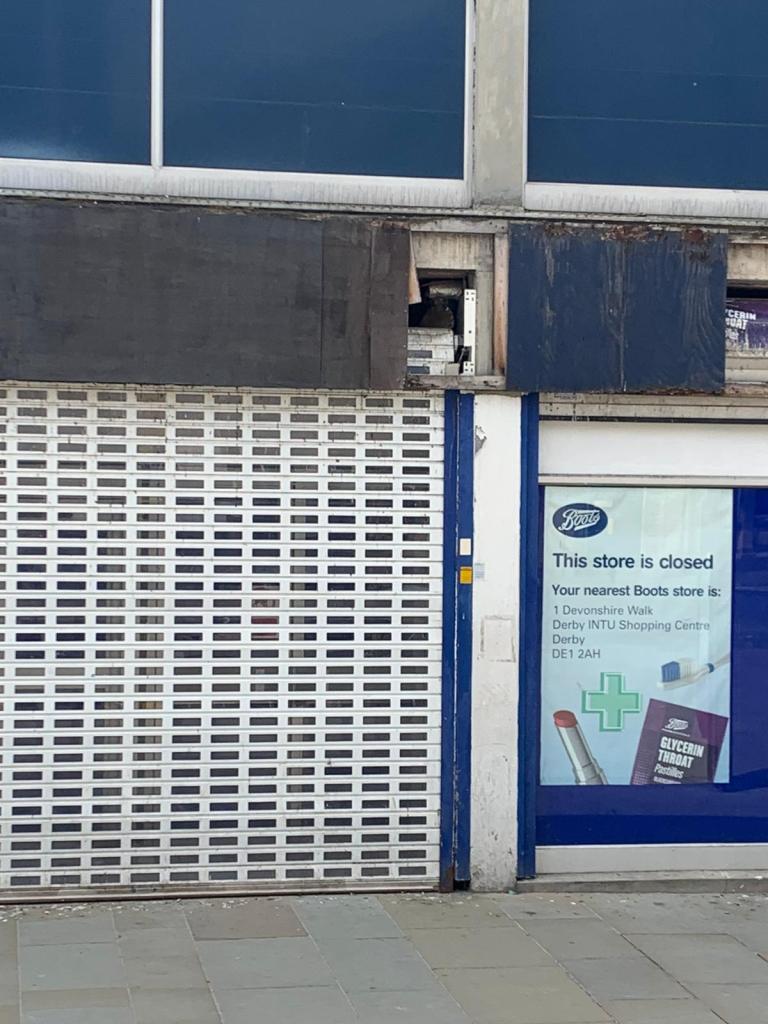 As I continued to delve further into town I couldn’t help but notice , partly as a result of the quiet atmosphere due to the corona virus pandemic and its restrictions to societies lifestyle’s, the amount of empty shops and stores under construction, leaving me to wonder if they are in fact developing or slowing dying. The shop exterior fronts didn’t seem to match the business’s present inside, it all seemed to be somewhat of an organised mess, giving me the notion of a ‘Patchwork Quilt City’. Ignoring the shops that actually seem as they would be functioning if life was at a norm, which I would say is approximately 50%. Leaves the rest of them seemingly a balanced mix of vacant, opening up, closing down, closed for maintenance, under construction or newly constructed stores. Growing up in South West London, including such places as Clapham I have seen for better or for worse what outside investment and the gentrification can do to a town/city, but Derby is different and its town centre to me is evident of that. It seems to me as if Derby cannot decide whether it wants to embrace the times and gentrify or hold on to its past and reside more traditionally. Leaving it with a mix of contrasting shops and business’s, even to include the architecture of the buildings they are in. The dense mix of brand new and purpose-built buildings compared to the more vintage establishments, that where clearly built to last with some living up to that a lot better than others, leave the high street appearing like a concrete collage. However, this doesn’t give me the impression that it’s an economic issue, but rather Derby as a City cannot make its mind up and instead starts on something new rather than finishing current projects or maintaining its existing infrastructure. Giving me the image of a child that moves his food around his plate to give it the impression it’s been consumed, but not actually eating it.